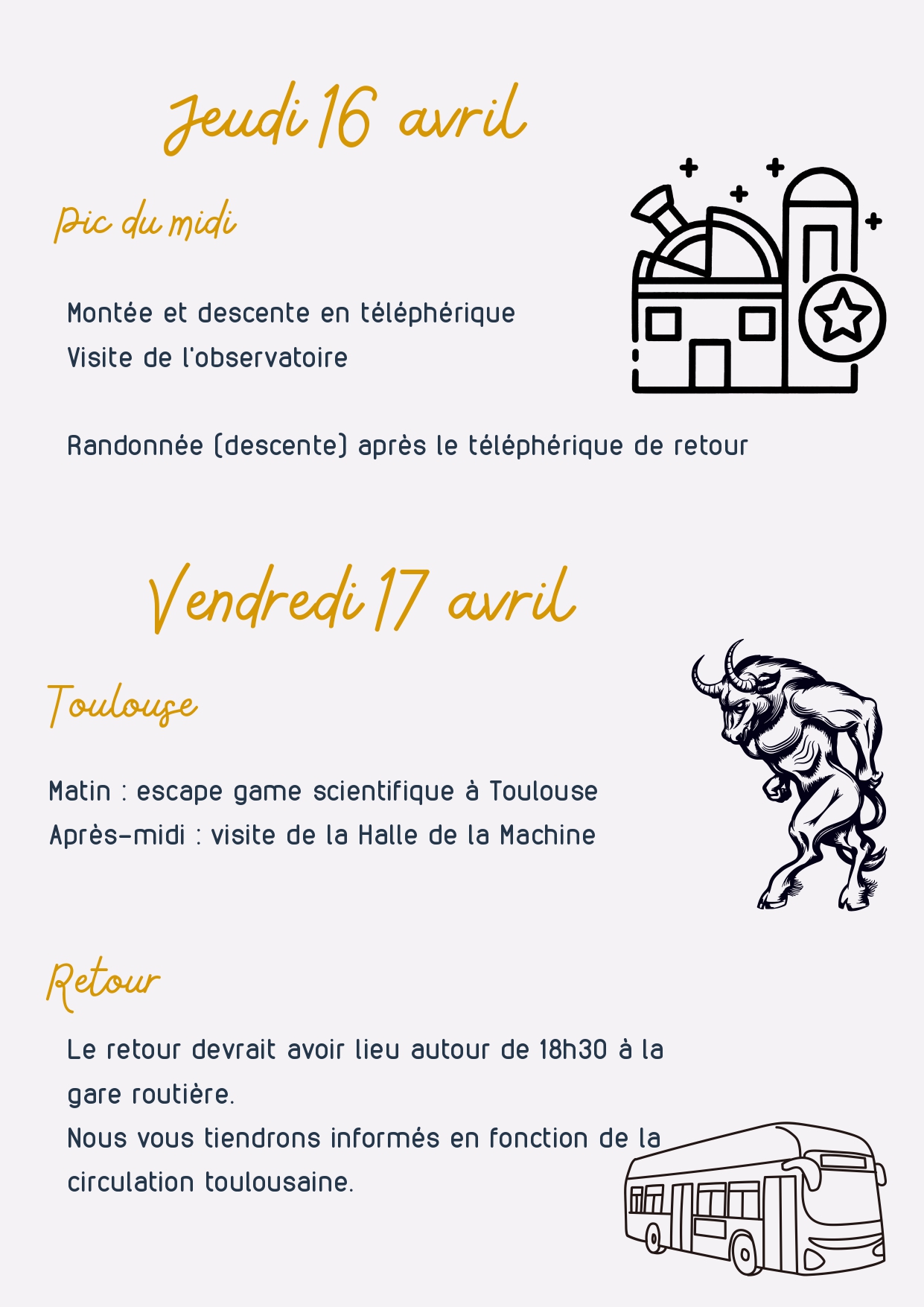 Du 15 au 17 avril 2026, les élèves de Terminale SPE PHYSIQUE explorent les sciences sous diverses formes et dans divers lieux. Toutes les information utiles à destination des élèves et de leurs parents